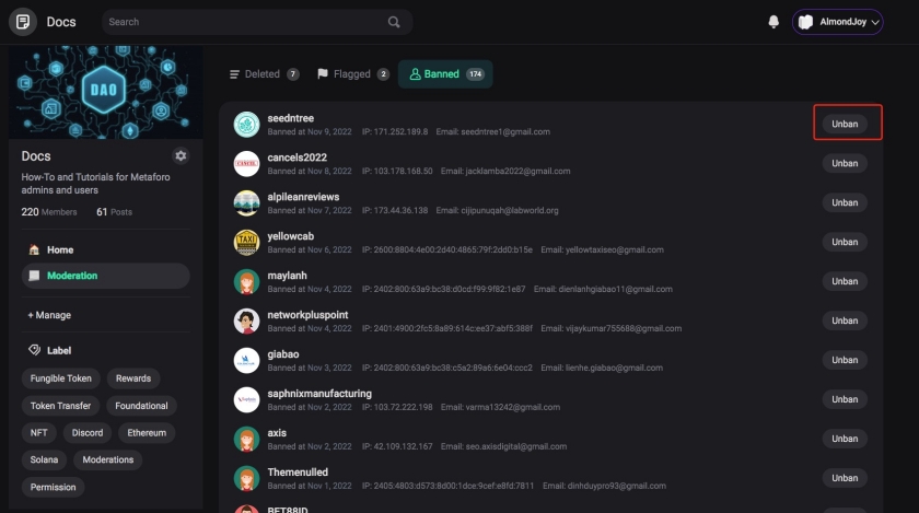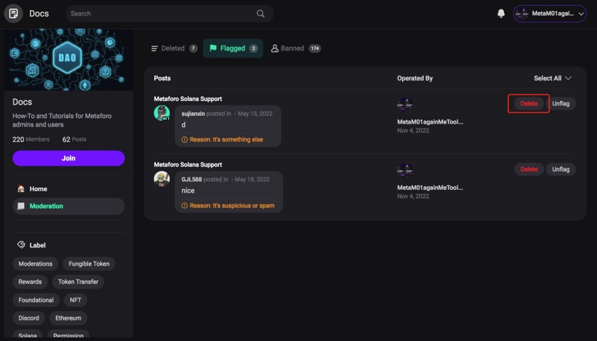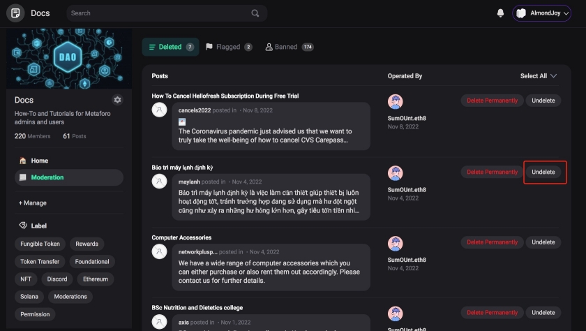 A preview of the soft deleted posts, flagged posts, and banned posts will appear on the Moderation page.
